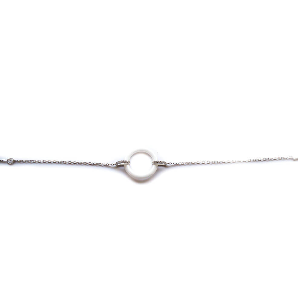 Ασημένιο Βραχιόλι Circle Λευκό με ζιργκόν κατάλληλο να συνοδεύει κάθε για γυναικεία έξοδο.