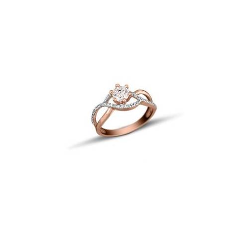 Ροζ Χρυσό Δαχτυλίδι 9Κ Με Άσπρη Πέτρα Ζιργκόν Και Πέτρες Ζιργκόν Περιφερειακά KO-RN11932 σε 9 καράτια.