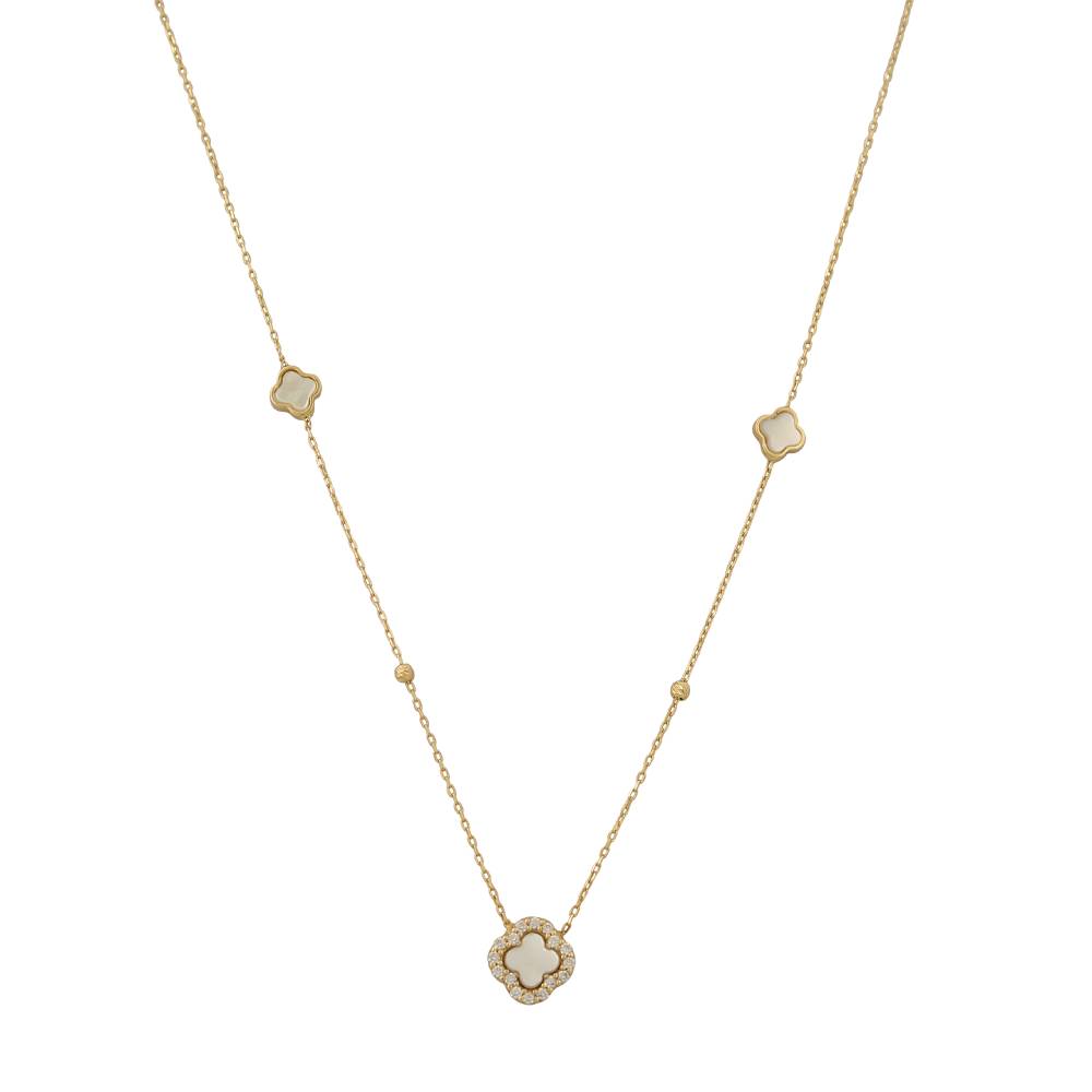Χρυσό Κολιέ 14Κ Με Άσπρους Σταυρούς Τύπου Van Cleef And Arpels Με Άσπρο Σμάλτο απο την Χρυσή Γωνιά. Ένας μοναδικό κολιέ για κάθε περίσταση.
