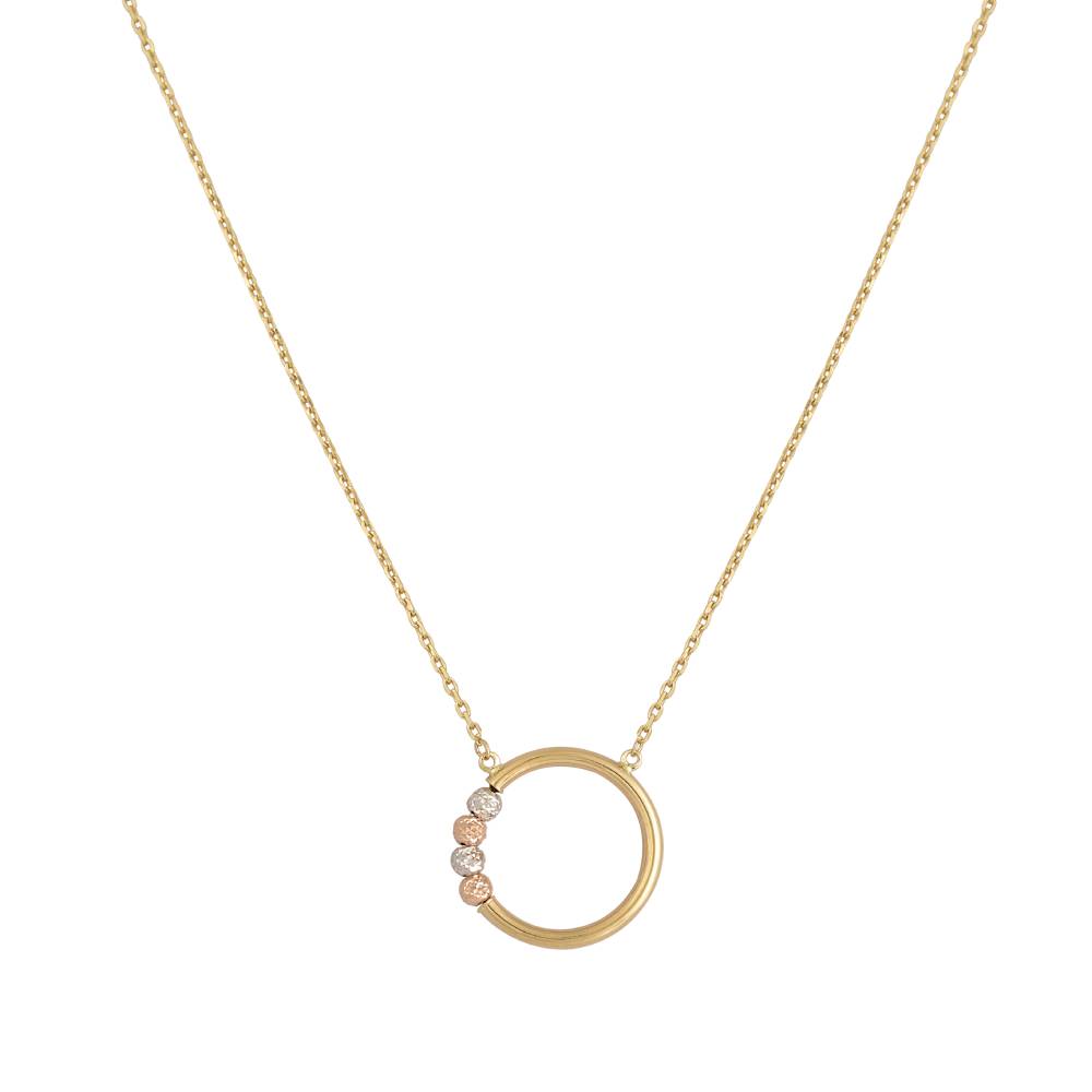 Χρυσό Κολιέ 14Κ Με Μεγάλο Χρυσό Κρίκο Και Χρυσές Λευκόχρυσες Και Ροζ Χρυσές Χάντρες απο την Χρυσή Γωνιά. Ένας μοναδικό κολιέ για κάθε περίσταση.