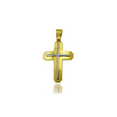 Χρυσός Σταυρός Δίχρωμος Μοντέρνος 9Κ KO-CR11239.